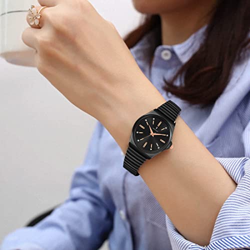 Imperious Stainless Steel Dial Wrist Watches for Women Stylish Belt Ladies Watch - Classic Black Water Resistant Womens Watches