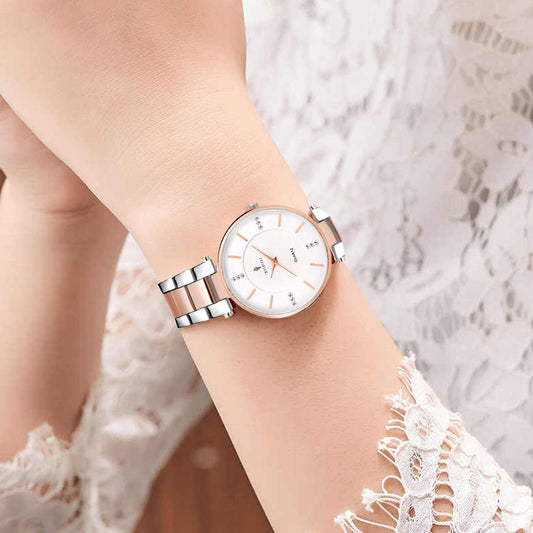 Imperious White Analogue Watch Silver Dial Strap Watch (Golden)