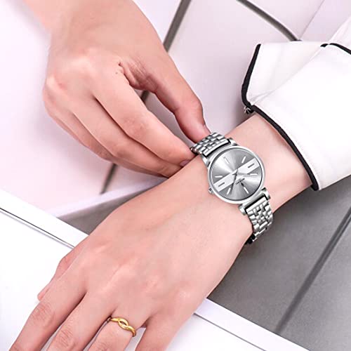 Analogue Wrist Watches for Women - Deep Silver, Stainless Steel & Water Resistan