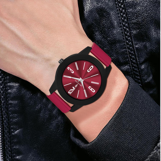 IMPERIOUS - THE ROYAL WAY Watches for Men Round Analogue Stainless Steel Dial Men Watch with Silicon Adjustable Strap Watches for Mens (Maroon)
