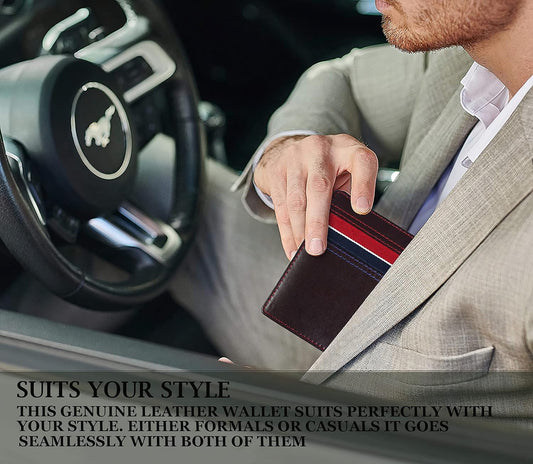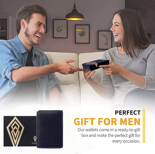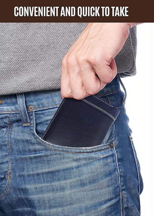 RFID Protected Genuine Leather Wallet for Men (Navy)