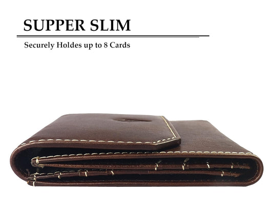 Unisex Leather Wallet, 8 Card Holder Slots, Slim Wallet (Italian Brown)
