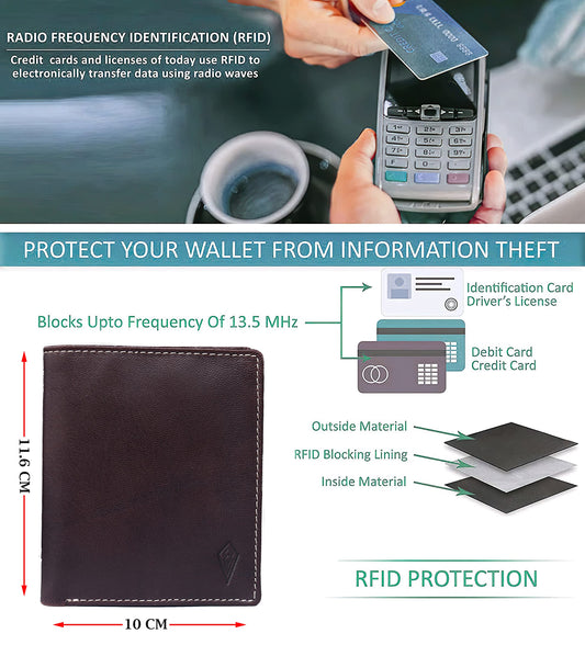 THE ROYAL WAY Black Leather Men's Tri Fold RFID Blocking Wallet