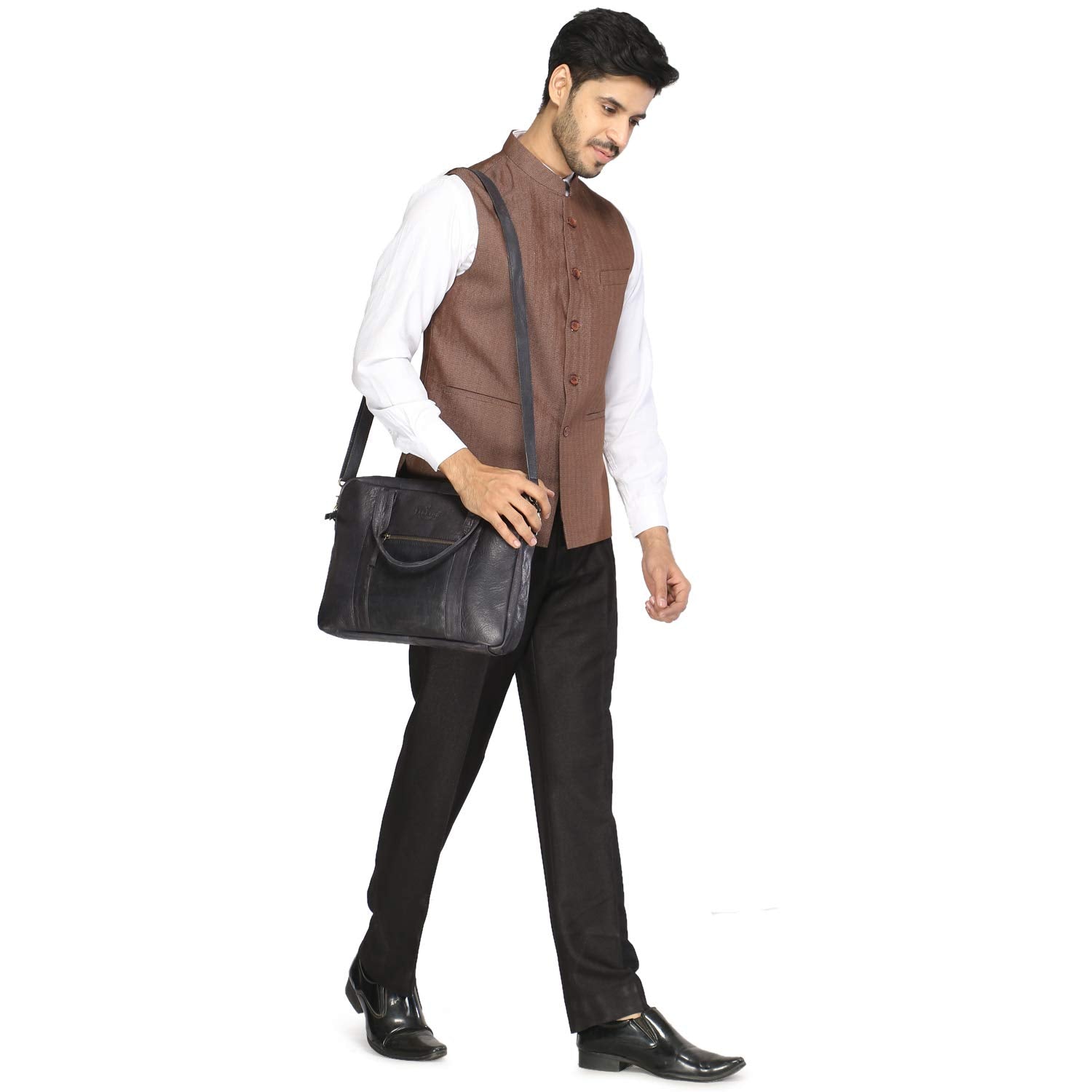 Pure Leather Laptop Messanger Bag (Black - 14 inch)