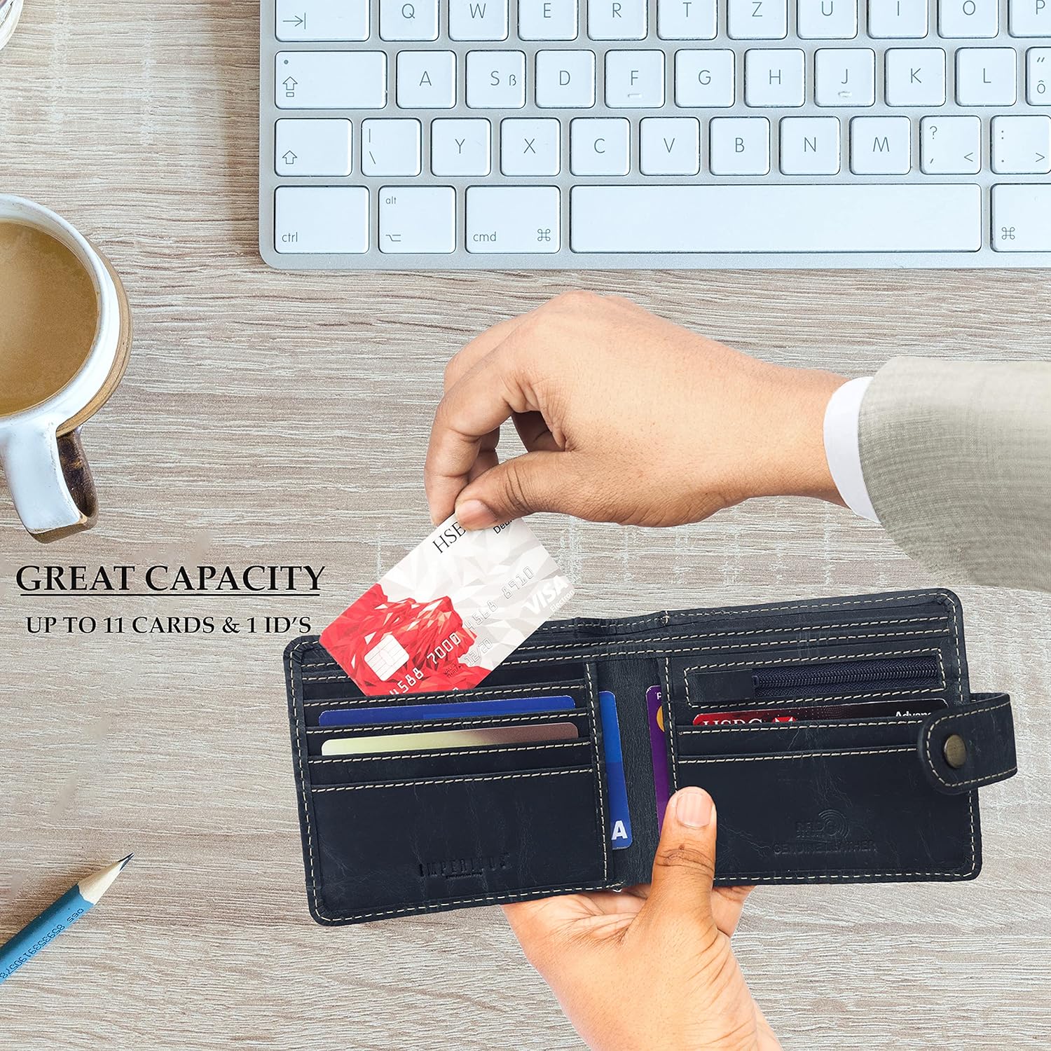 Vinatge Leather Wallet, 2 Fold Wallet with 9 Card Holder Slots (Italian Brown)
